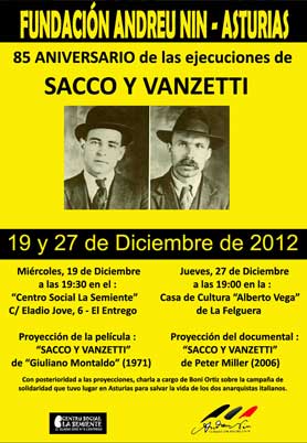 Actos de la Fundación Andreu Nin -Asturies- en el 85 aniversario de las ejecuciones de SACCO y VANZETTI y la solidaridad asturiana contra las ejecuciones de Sacco y Vanzetti.