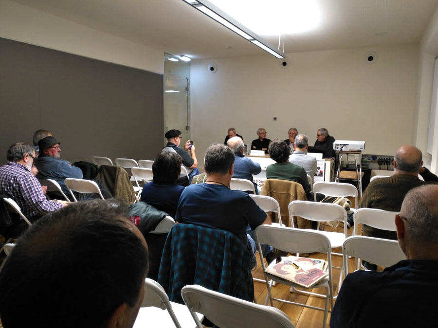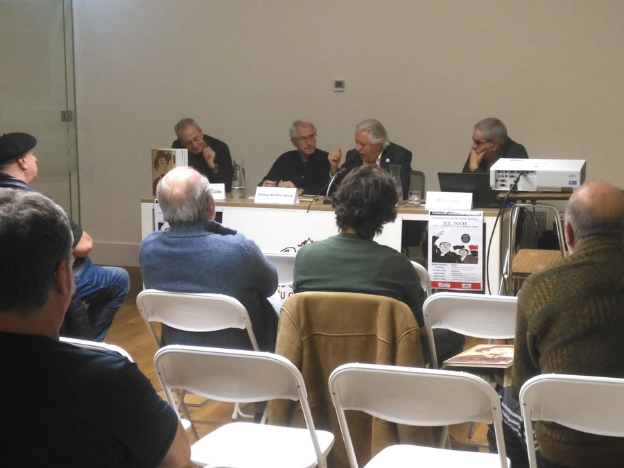 Excedería de los propósitos de este artículo recoger todos los galardones que ambos han recibido. Y así, podríamos citar que Leonardo Padura, periodista, novelista y crítico cubano, es Premio Nacional de Literatura de su país en 2012, de la Orden de las Artes y las Letras de Francia en 2013 o el más reciente Princesa de Asturias de las Letras en 2015, entre otros. Y en cuanto a LLuis Juste de Nin— artista polifacético: dibujante, guionista, ilustrador…, miembro del Círculo Catalanista del Ateneo Barcelonés y de la Fundación Andreu Nin, ha conseguido, entre otros también, la Medalla “Antonio Gaudí” a la Creatividad en 2003 o el Premio Nautilus en la primera edición del Premio Internacional de Cómic “Ciudad de Badalona” en 2010. Completaba el guión de este Encuentro Enrique del Olmo, presidente de la Fundación Andreu Nin a nivel estatal, que se encargó de dar a conocer los objetivos de una Fundación creada en 1987 con la intención de difundir la memoria de la izquierda antiestalinista, ejemplarmente representada en nuestro país por el POUM, y entre cuyas finalidades se cuenta la de combatir la herencia y las consecuencias del totalitarismo en cualquier lugar del mundo y en todas sus manifestaciones.